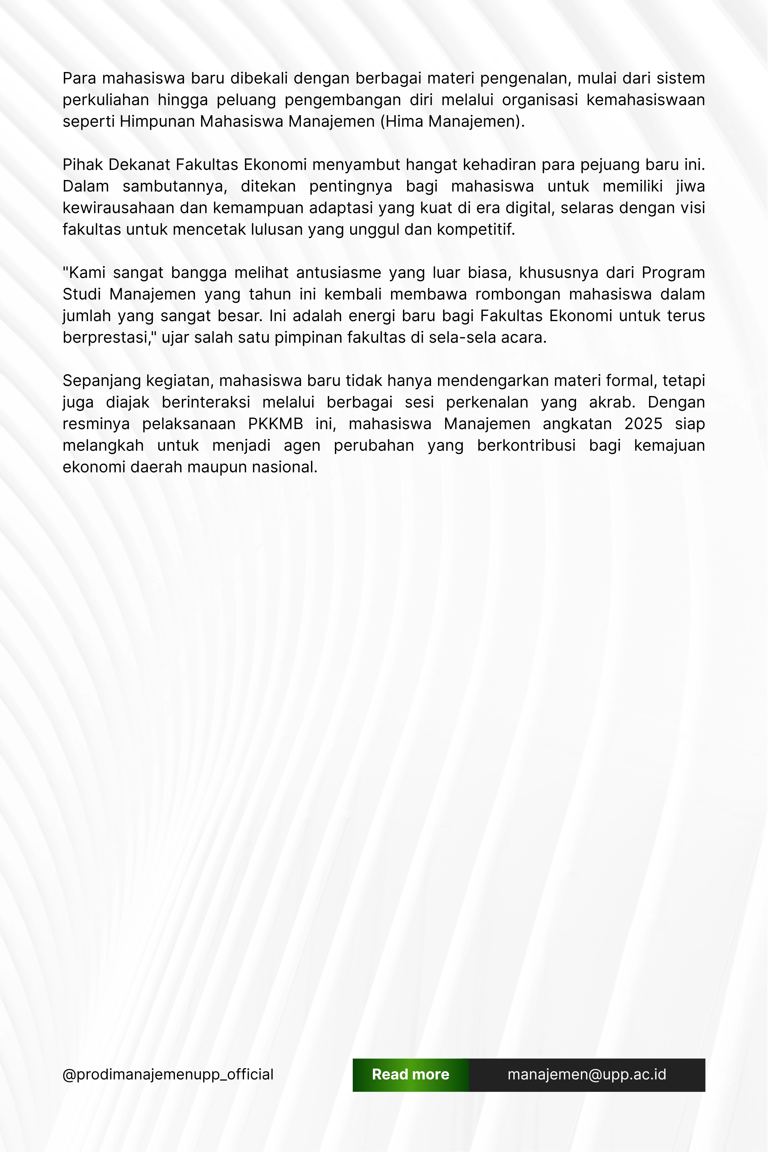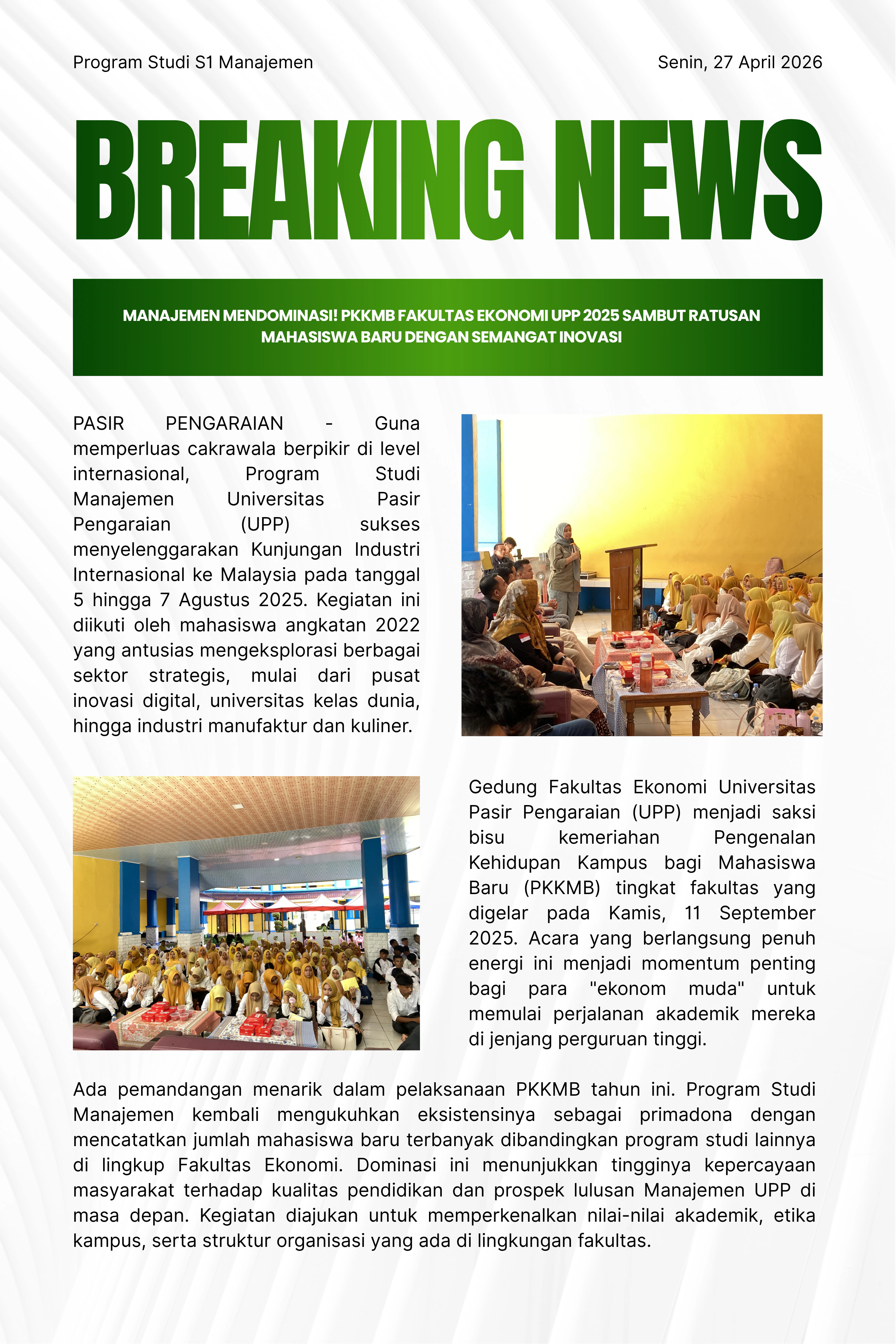 MANAJEMEN MENDOMINASI! PKKMB FAKULTAS EKONOMI UPP 2025 SAMBUT RATUSAN MAHASISWA BARU DENGAN SEMANGAT INOVASI
